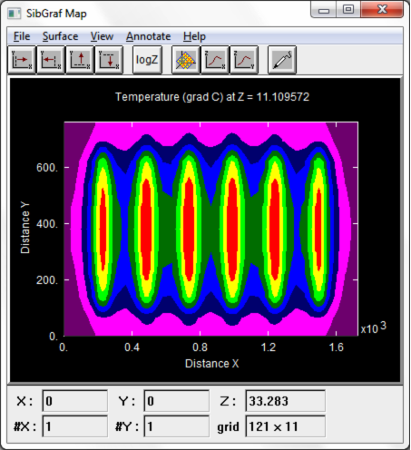 SibLin Graphical User Interface allows to plot two-dimensional distributions of the obtained solution at various cross-sections of the three-dimensional structure.